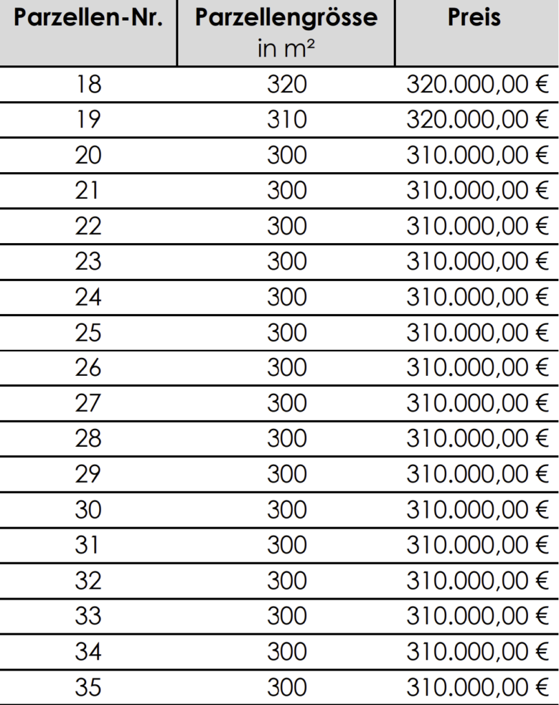 Kaufpreis pro Grundstück: 19 Parzellen für je 320.000,00 EUR